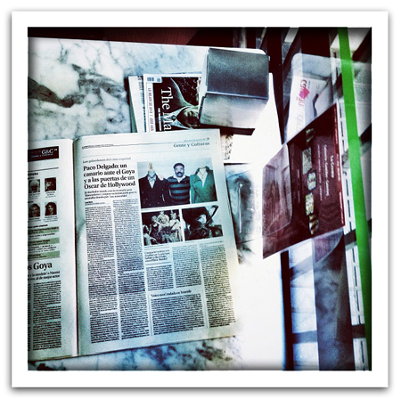 Muy documentado tu artículo, como todos los tuyos referentes al cine, y especialmente a los canarios vinculados a él. Aunque a Paco Delgado le supere la fama sobrevenida ahora con tanta nominación a premios tan relevantes, estoy seguro de que más tarde o más temprano será entrevistado en este blog. Enhorabuena a Delgado y, por extensión, a Lanzarote… y ahora a cruzar los dedos a ver si hay suerte. PD: Me encanta la foto en la que se ve el artículo publicado en La Provincia-Diario de Las Palmas… y un servilletero sobre una publicación que habla de The master, película que no me gustó en absoluto.