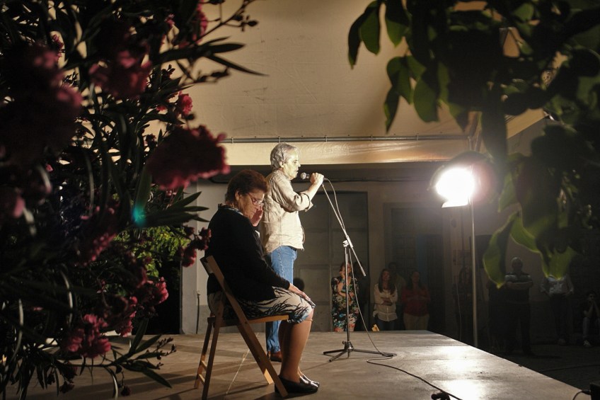 Homenaje a Andrés Santana en Las Lagunetas Publicado el 10 febrero, 2013 a 1417 × 945 en Andreas Dresen y Andrés Santana, colaboraciones de cine en El Asombrario de Manuel Cuéllar Andrés Santana habla al público en segundo término mientras Sofía Quintana escucha sentada en una silla en el escenario. MARÍA G. CALIMANO