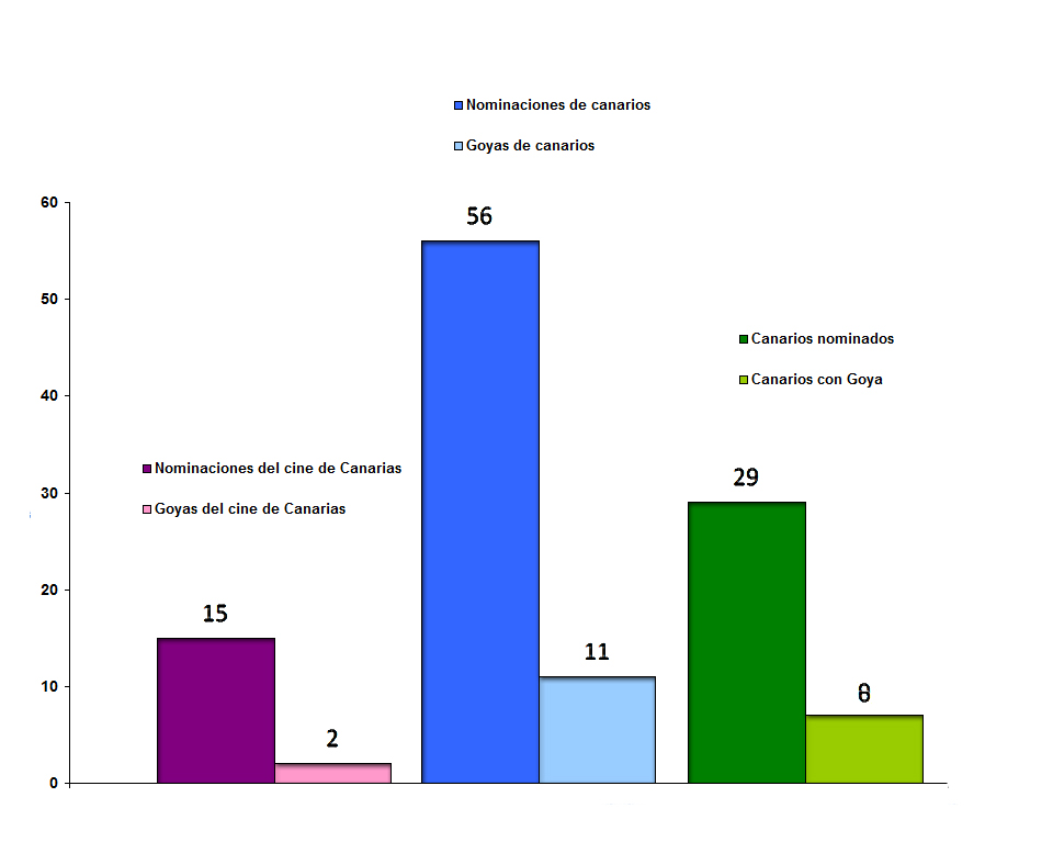 Nominaciones de Canarias en los Goya Publicado el 20 febrero, 2013 a 960 × 767 en Más sobre Paco Delgado, diseñador de vestuario / Sebastián Álvarez, productor / Canarias en los Premios Goya / Balance de la 27 edición Los tres grupos de gráficas muestras los números de nominaciones y premios en relación al cine de Canarias y a los cineastas. LUIS ROCA ARENCIBIA