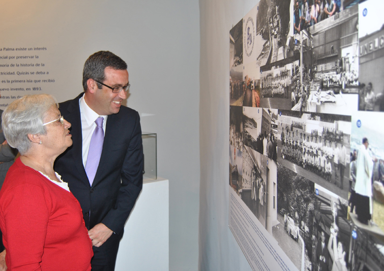 El alcalde de la ciudad y la consejera de Cultura observan una de las piezas de la exposición. Publicado el 27 marzo, 2013 a 779 × 551 en Llega a La Palma la exposición La Memoria Encendida, sobre la historia de la electricidad en Canarias Sergio Matos y María Victoria Hernández miran el panel que muestra un collage de fotos del desarrollo eléctrico en La Palma. Foto de RUBÉN LÓPEZ.
