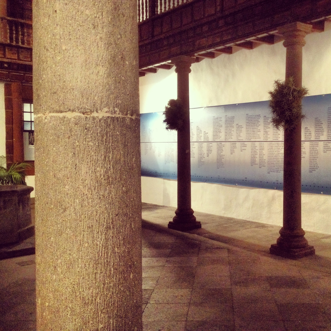 El cronograma con los principales hitos del sector eléctrico en Canarias en el patio de la Casa Salazar. Publicado el 27 marzo, 2013 a 1280 × 1280 en Llega a La Palma la exposición La Memoria Encendida, sobre la historia de la electricidad en Canarias Foto de LUIS ROCA ARENCIBIA. Subida a la red social Instagram: @luisrocaarencibia