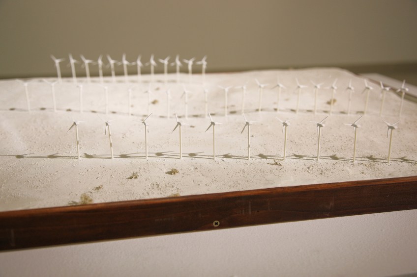 131106ftv_exp_memoria_encendida_endesa034 Publicado el 12 noviembre, 2013 a 2784 × 1856 en El alcalde de Puerto del Rosario calificó la exposición La Memoria Encendida de “regalo para la ciudad” Detalle de la maqueta del parque eólico Cañada de la Barca, realizada para la exposición / ACFIPRESS