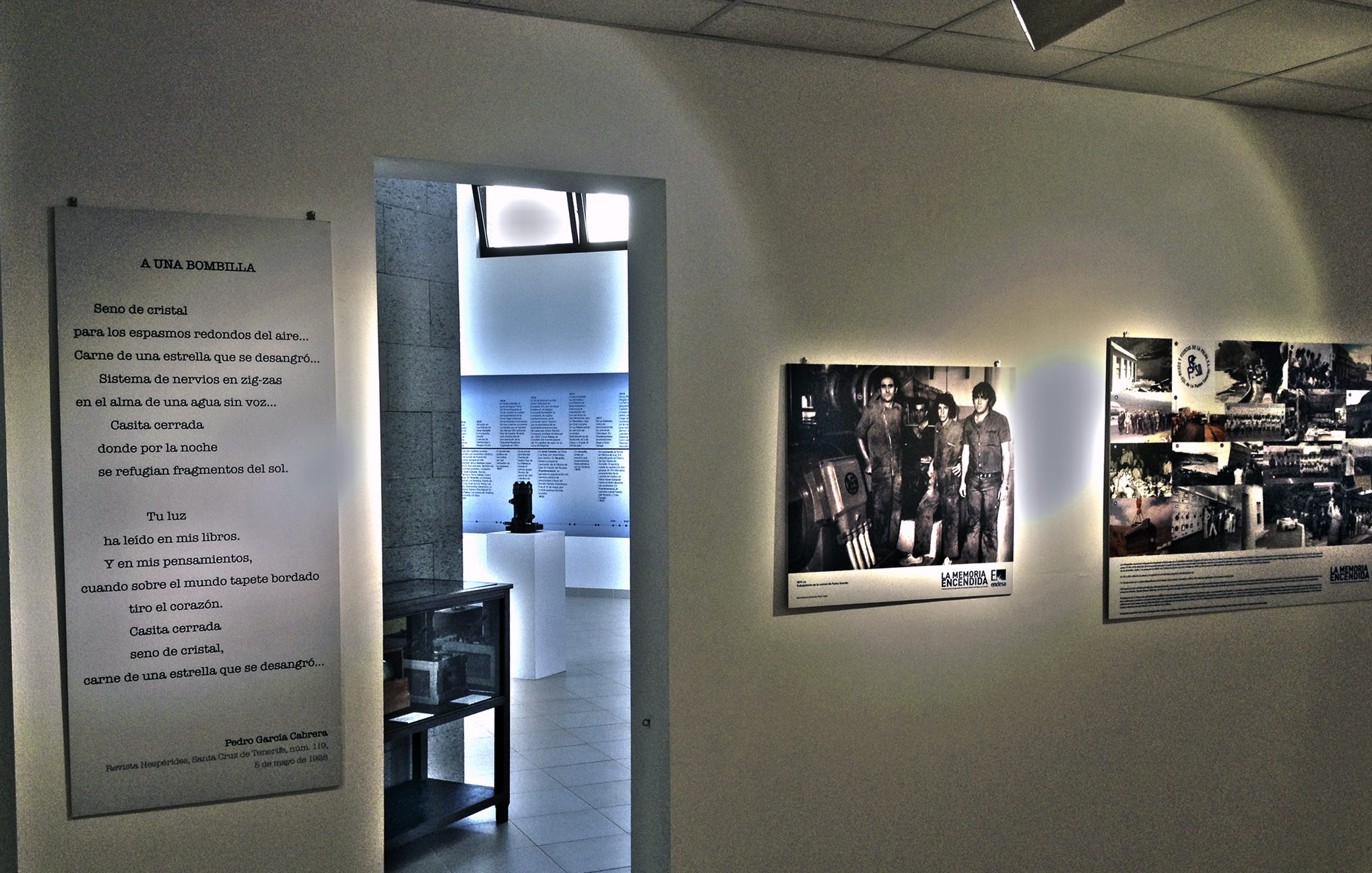 ExpoBombilla Publicado el 12 noviembre, 2013 a 2037 × 1296 en El alcalde de Puerto del Rosario calificó la exposición La Memoria Encendida de “regalo para la ciudad” Vista de la exposición, con el poema de Pedro García Cabrera en primer término / LUIS ROCA ARENCIBIA