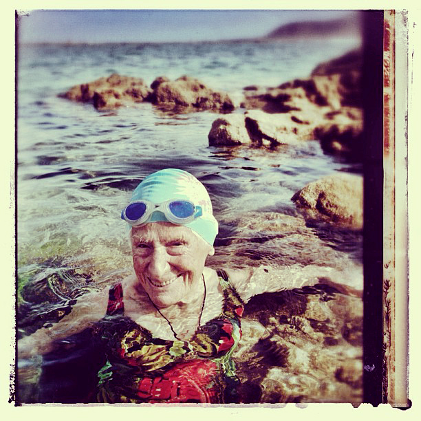 Bernarda Angulo, ‘Berni», la campeona de natación en categoría ‘master’ de 97 años, con varios récords mundiales, falleció en el hospital Doctor Negrín de Las Palmas de Gran Canaria al día siguiente de publicarse el reportaje que le hice para EL PAÍS SEMANAL, ilustrado con una versión sin retoques de esta imagen. Foto: LUIS ROCA ARENCIBIA