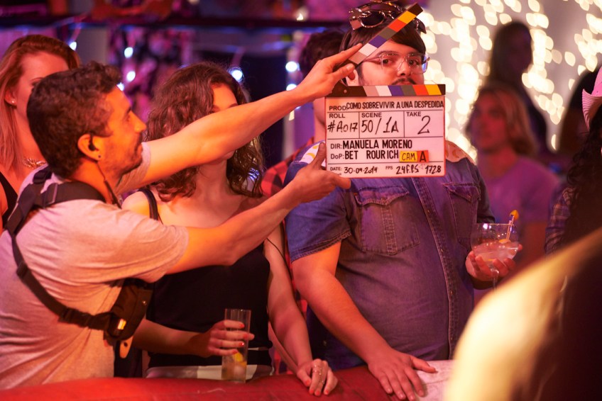 01019©joseharo Publicado el 29 mayo, 2014 a 1134 × 757 en Finaliza el rodaje de “Cómo sobrevivir a una despedida”. Charla con la directora Manuela Moreno y las actrices Natalia de Molina y Úrsula Corberó. Brays Efe detrás de la claquetas durante el rodaje en Holiday World.
