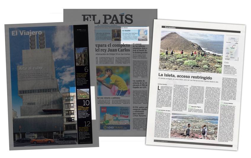 Así apareció el reportaje en EL PAÍS, con referencias en la portada del diario y del suplemento El Viajero. «La Isleta, acceso restringido» fue subiendo puestos entre Lo Más Leído de la sección, hasta ocupar durante todo el domingo 15 el segundo lugar. A fecha de hoy ha sido compartido 1.021 veces en muros de usuarios Facebook.