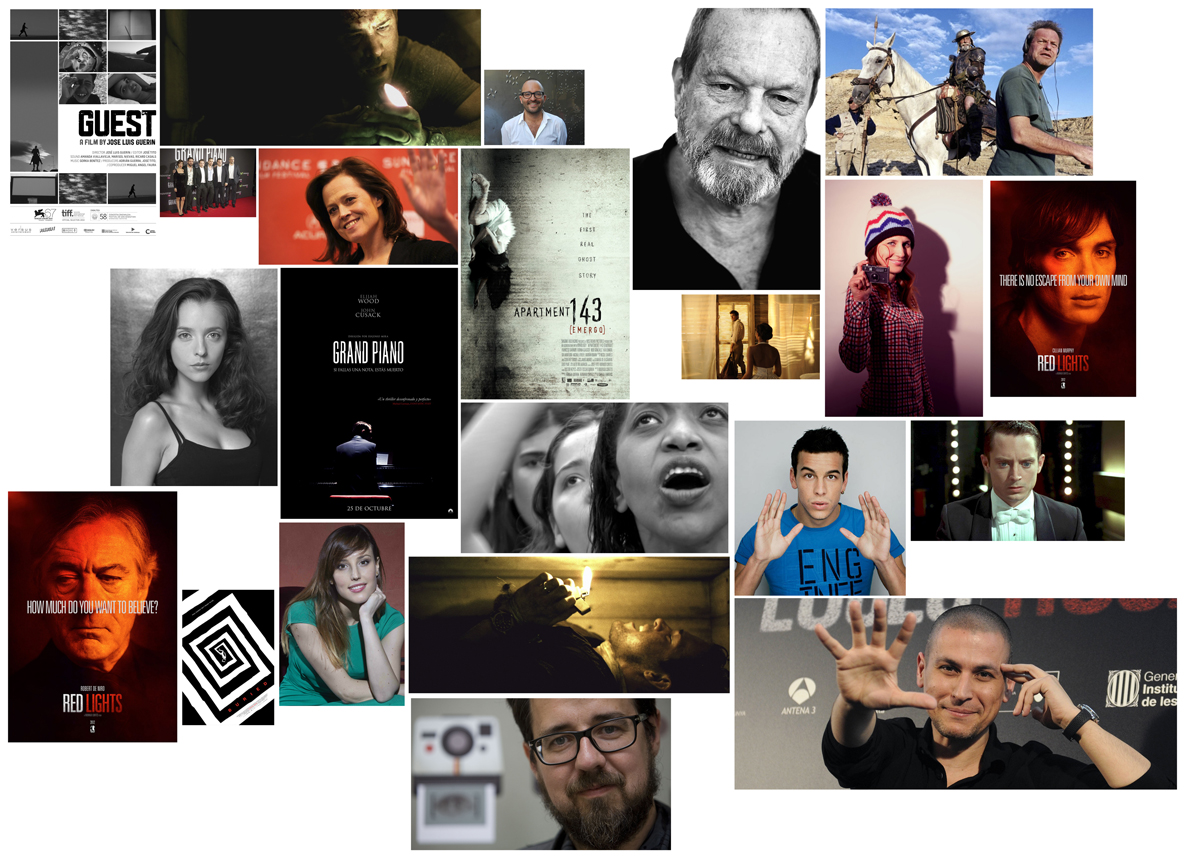 Collage de fotos con imágenes de películas de Adrián Guerra, directores y actores que trabajan con él.