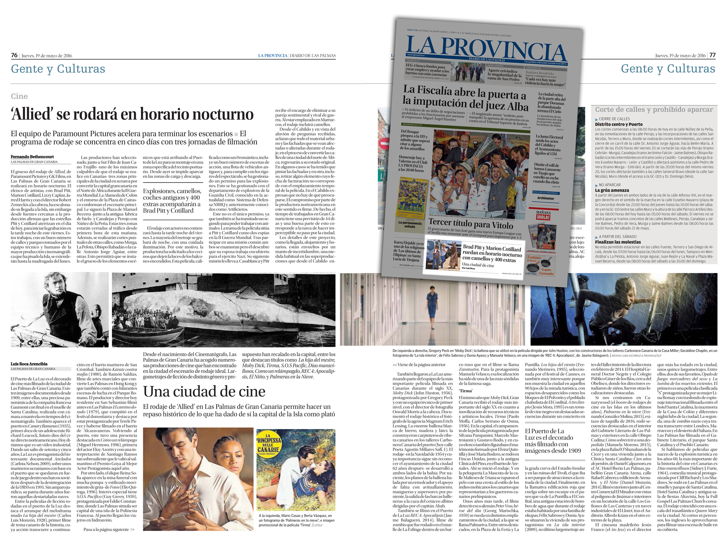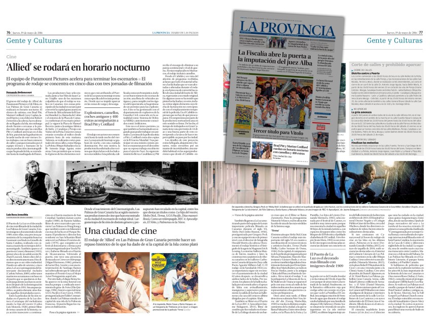 Dossier Personalizado Publicado el 21 mayo, 2016 a 2361 × 1789 en Las Palmas de Gran Canaria es una ciudad de rodajes de cine Así, con llamada en la portada del periódico, se publicó en La Provincia este artículo sobre rodajes de cine en Las Palmas. / OAC