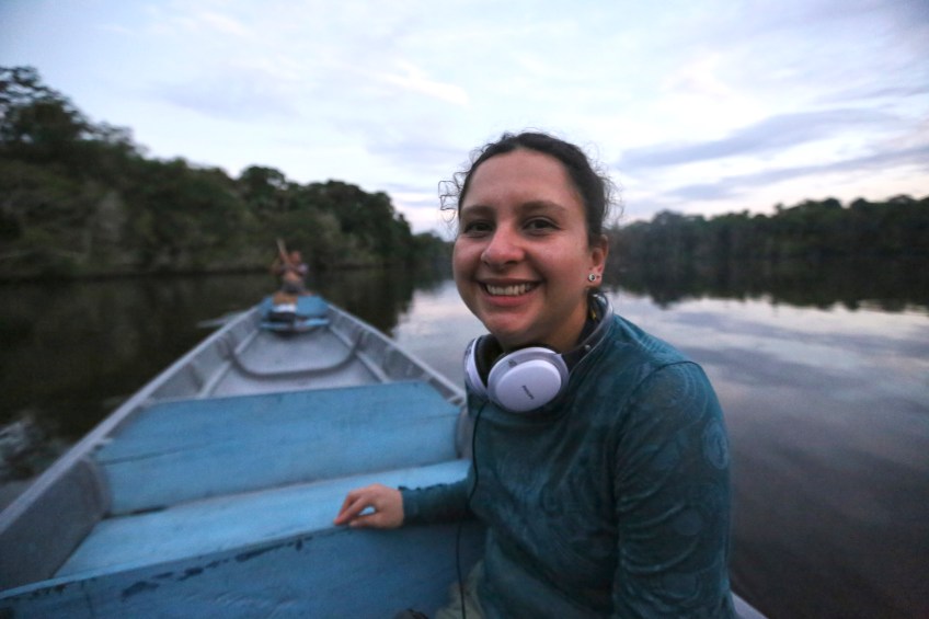 LuisanaCarcelen Publicado el 28 mayo, 2016 a 5472 × 3648 en Rodar la lucha del pueblo waorani por sus derechos en el Amazonas La ecuatoriana Luisana Carcelén, en una canoa en el Amazonas. / MANUEL CARDENAL