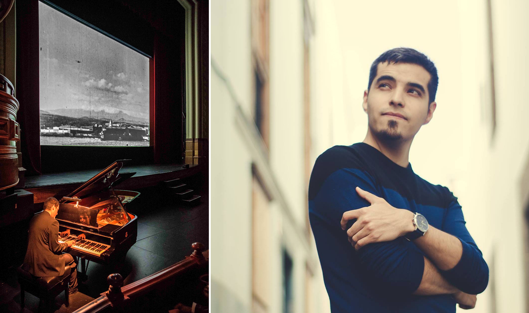 ProyeccionTPG 7 JA BLOG Publicado el 30 junio, 2018 a 2114 × 1250 en Especial «La hija del mestre»: Todo sobre la madre del cine canario Retrato de Jonay Armas (d). Izqda.: El músico y crítico de cine canario, al piano durante la proyección en el Teatro Pérez Galdós.