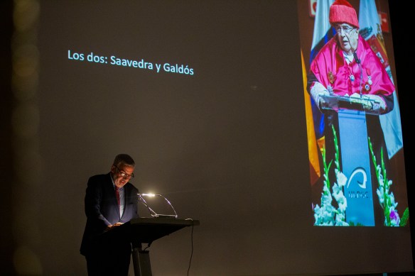 El acto estuvo presidido por el rector de la ULPGC, Lluís Serra, e intervinieron, además, la decana de la Facultad de Filología, Dolores Fernández; la sobrina de Saavedra, Sylvia Saavedra-Edelmann; el Catedrático de Derecho Penal de la ULPGC, Fernando Navarro; y los artífices del documental, la productora Marta de Santa Ana y el director Luis Roca. Tras este texto comparto el titulado “Sedimento”, leído en el acto por ambos.