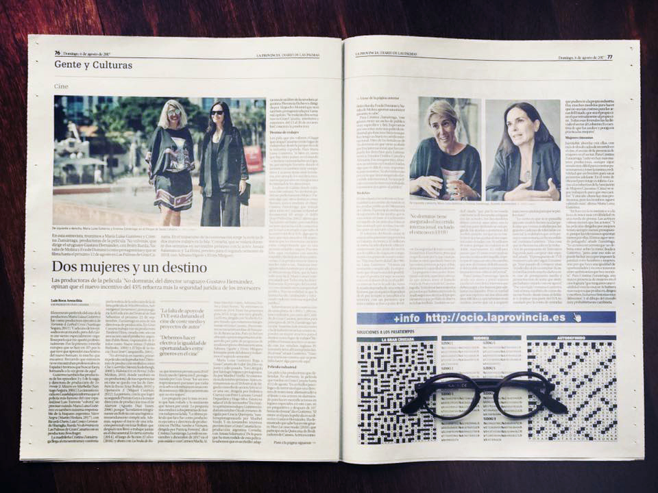 Mañana se inicia la filmación de «Perdida» en Gran Canaria, durante dos semanas, buen momento para rescatar esta entrevista en verano pasado a las productoras a María Luisa Gutiérrez y Cristina Zumárraga, donde saltó por primera vez la noticia de ese rodaje. Aqui se ofrece en versión completa. En el momento de la entrevista, publicada el 6 de agosto pasado en La Provincia, Gutiérrez y Zumárraga estaban en Gran Canaria como productoras españolas de “No dormirás”. Como ya avanzaba Gutiérrez en la entrevista, “Cornelia” (el nombre con que se refirió la película «Perdida») es un thriller que rodaremos durante dos semanas en Gran Canaria, del 13 al 26 de noviembre próximos con Amaia Salamanca y Lusiana Lopilato”.