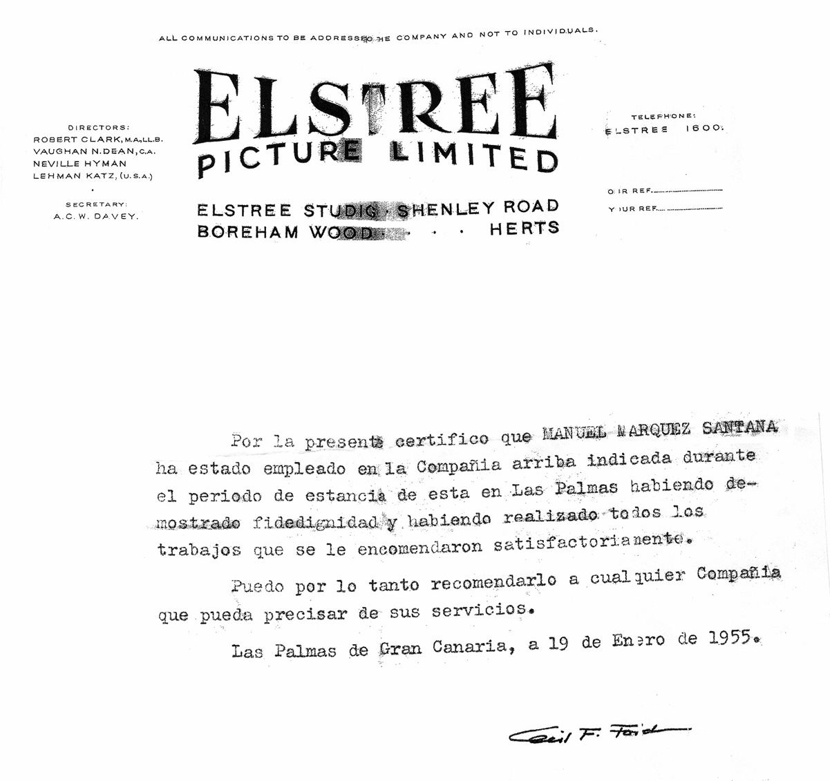 Destacan copias de los autógrafos aportados por Juana Bravo de Laguna Blandy con los nombres de John Huston y todos los actores de “Moby Dick” desplazados a Gran Canaria, Gregory Peck, Richard Basehart, Leo Genn, Harry Andrews, Bernard Milles, Edric Connor y Seamus Kelly. Asimismo destaca -también del rodaje de Moby Dick- la carta de recomendación realizada por la productora Elstree para Manuel Márquez, quien participó de extra como grumete en la misma. Finalmente, destaca el hecho de referencias de participantes a otras películas que no fueron “Tirma” y “Moby Dick”.