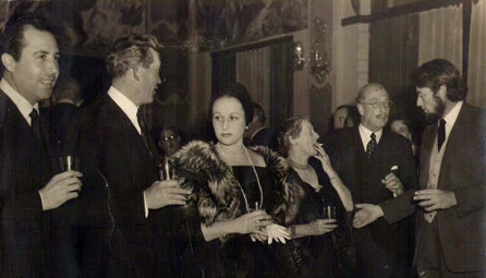 2) En el centro de la imagen, Gustavo Rojo en una fiesta en casa de Juan del Río Ayala en Santa Brígida. A la derecha de la imagen, Marcelo Mastroianni (1d) y José María Lado (2d). Aportada por Juan Teresa del Río, hija del autor del poema  «Tirma» y coguionista del filme, Juan del Río Ayala;