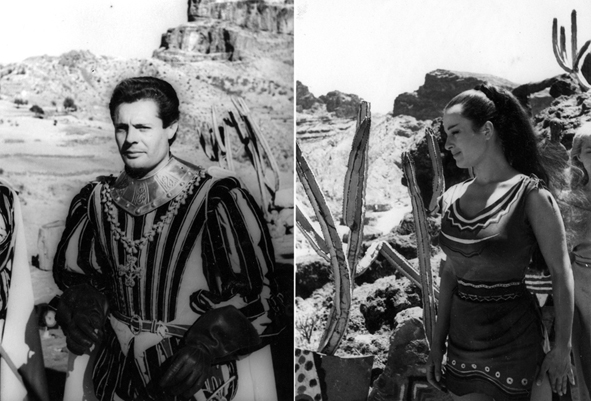 5) Ilse Court, traductora durante el rodaje de «Tirma» aportó las más bellas fotografías. Aquí, Mastroianni y Pampanini caracterizados del capitán Diego y la princesa Guayarmina;