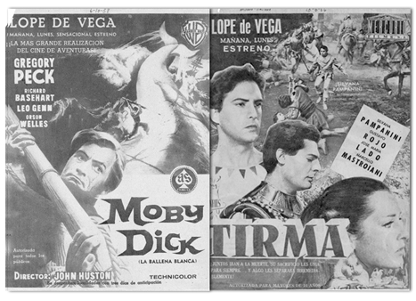 14) aportados por Luis Serrano, páginas publicitarias de los estrenos de «Moby Dick» y «Tirma» en el cine Lope de Vega de Madrid, publicadas en la revista Radiocinema en 1956;