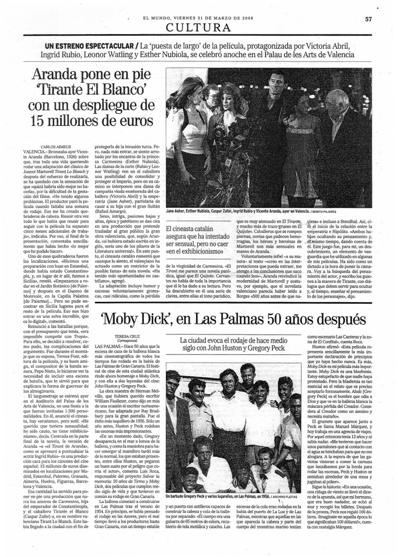 En 2006, coincidiendo con el 50 aniversario de su estreno puse en marcha un proyecto de recuperación documental sobre el más importante rodaje llevado a cabo en las islas Canarias. Un filme basado en la obra maestra de Hermann Melville, escrito por John Huston y Ray Bradbury, con interpretaciones sobresalientes (Gregory Peck y Richard Basehart, entre otros), momentos inolvidables como el sermón del padre Mapple (Orson Welles), que costó 4,5 millones de dólares y recaudó 10,4, el más taquillero del año en Estados Unidos, aunque decepcionara a una parte de la crítica. A pesar de eso John Huston recibió el premio al Mejor Director del Círculo de Críticos de Nueva York.