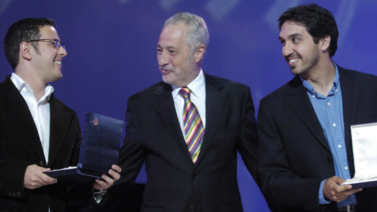 3) en 2006, año de proyección de «Tirma» en el Auditorio Alfredo Kraus, el premio del Foro Canario que dirigía lo quiso entregar el presidente del Gobierno canario, Adán Martín. Eran otros tiempos. Ganaron ex aequo David Cánovas (i) y Carlos Miranda, con los cortometrajes «El intruso» y «A mano»;