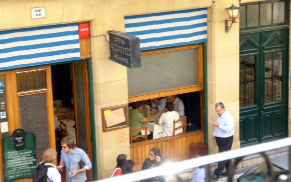 14) Álex de la Iglesia dándose al móvil fuera del restaurante Aldanondo (foto propia).